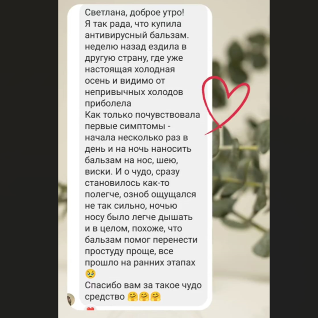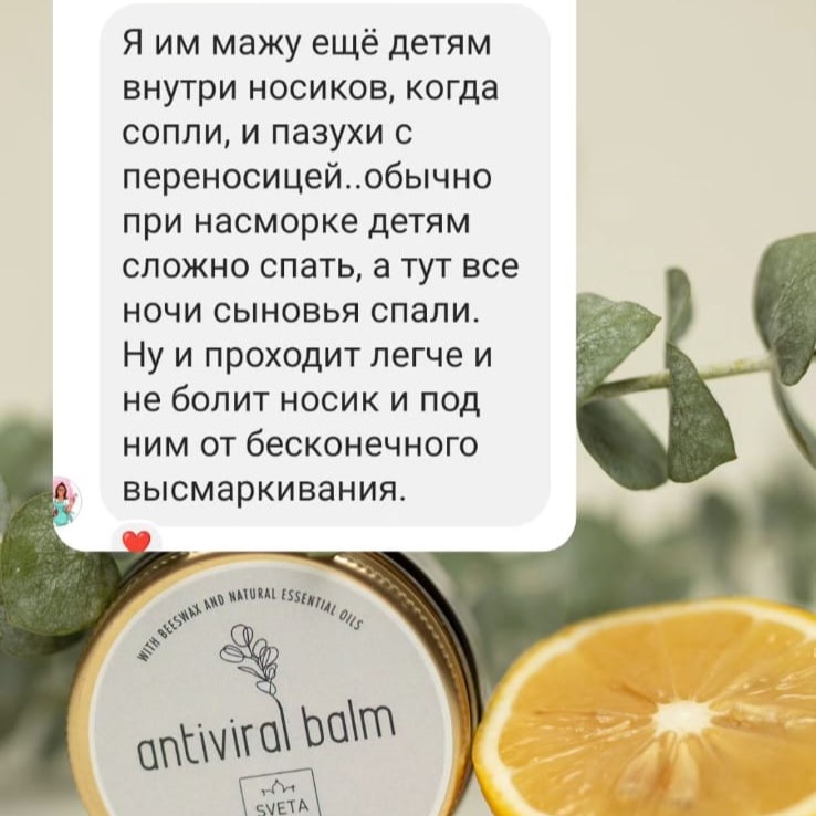 Противовирусный бальзам содержит эфирные масла, с доказанной эффективностью против ОРВИ, гриппа, бактериальных инфекций. |