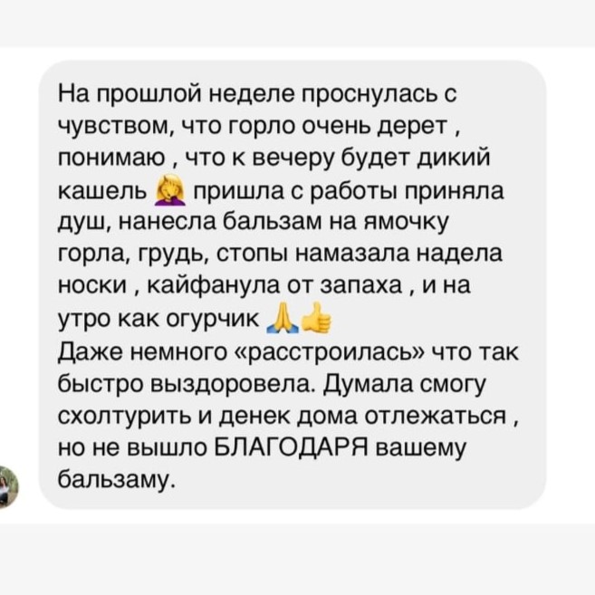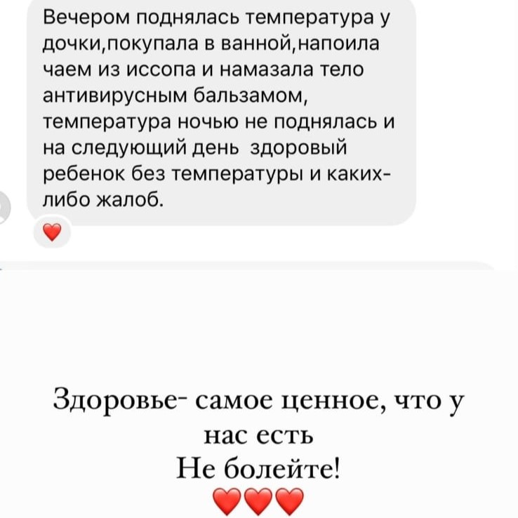 Если организм не справился, и все-таки заболел, то в течение всего лечения тоже нужно применять бальзам для облегчения состояния больного: снимать заложенность носа, боли в горле, стимулировать отхаркивание в легких, снижать температуру тела.