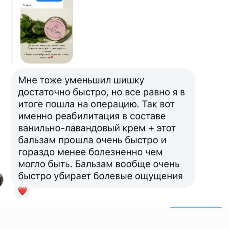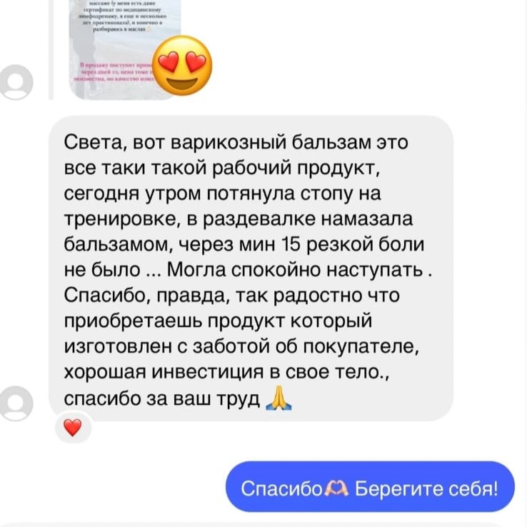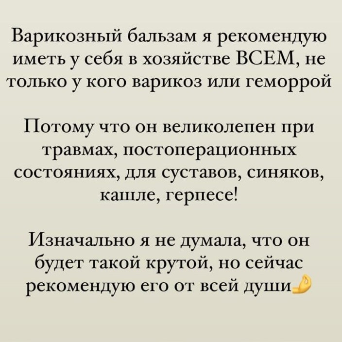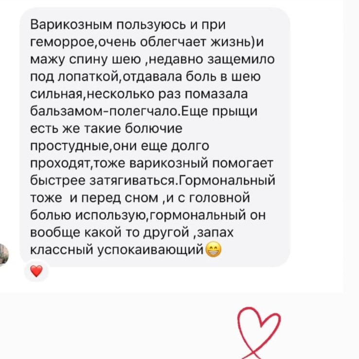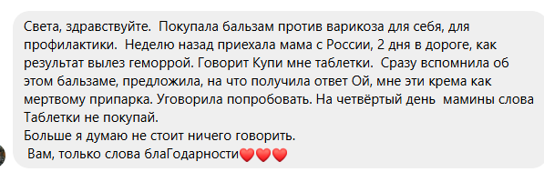 Комплекс растительных масел, экстрактов и эфирных масел в составе этого бальзама, будут тонизировать стенки сосудов, снимать воспаление, успокаивать раздражение и оказывать обезбаливающий эффект. |