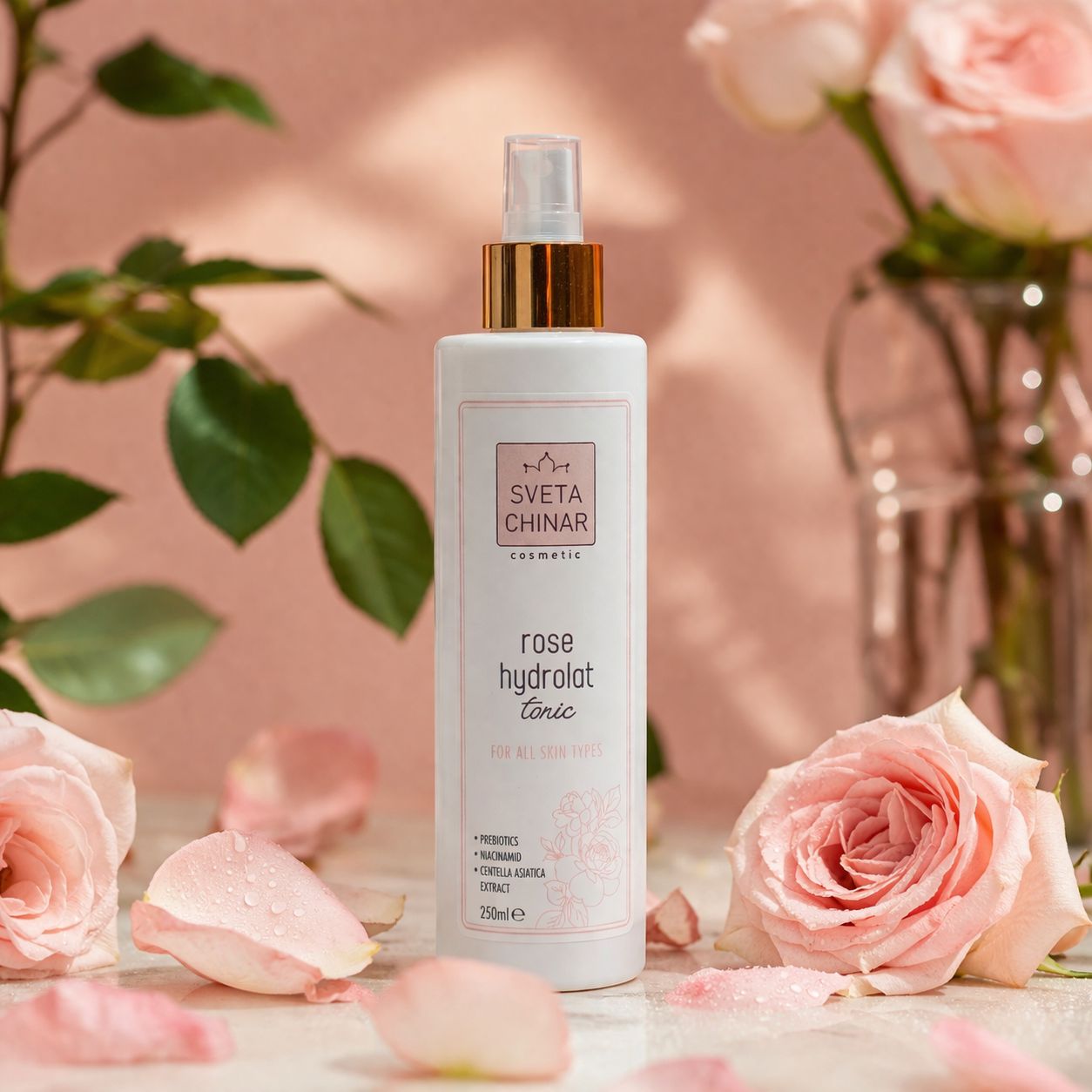 Цветочный тоник на основе гидролата розы.