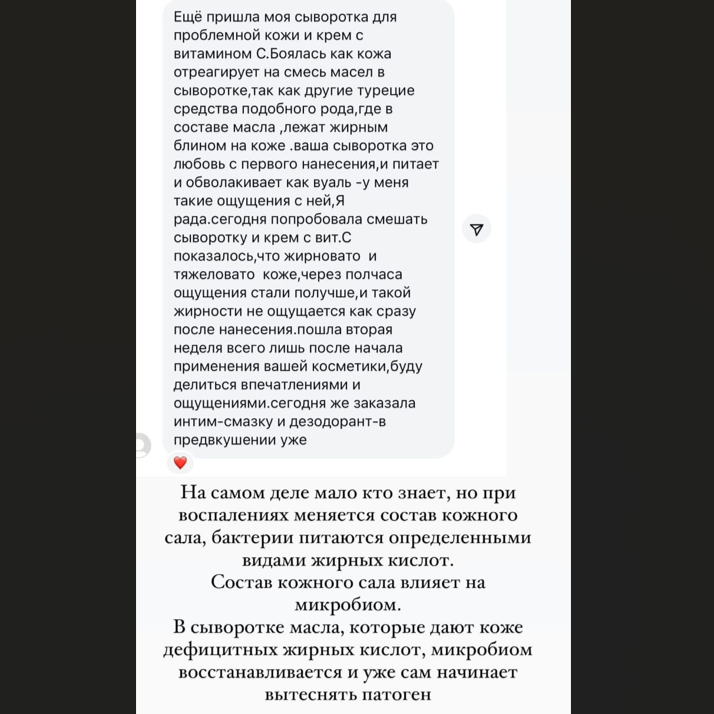 - Естественное восстановление: Сыворотка использует силу натуральных компонентов, таких как масла и эфирные масла, которые не нарушают естественный баланс микрофлоры кожи, обеспечивая её здоровое функционирование.