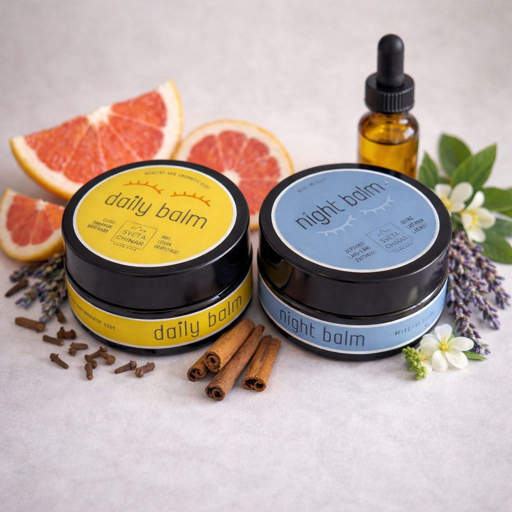 Дневной бальзам используйте как проснулись, можете нанести его на стопы, сделать легкий массаж стоп, растереть между ладошками и сделать около 5 вдохов. Процедуру вдохов можно повторить несколько раз. Не используйте бальзам после 12.00 часов дня.