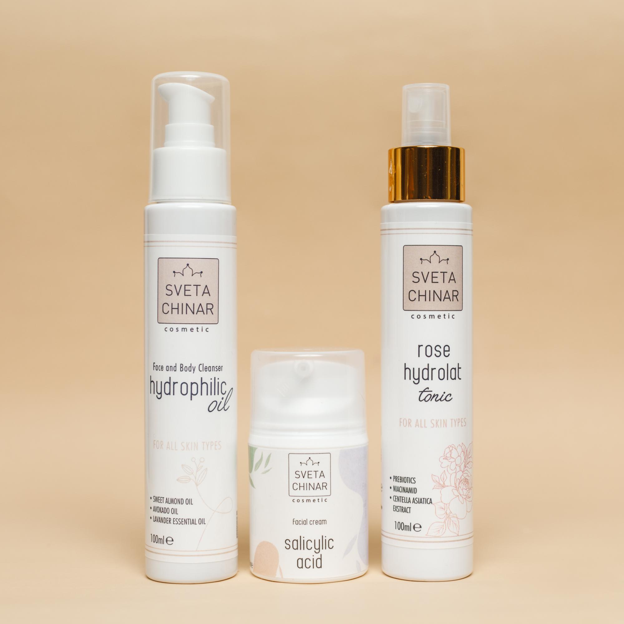Воспаленная кожа - это кожа с нарушенными барьерными функциями и слабым местным иммунитетом. Средства будут мягко восстанавливать защитный баръер, воздействовать на патогенную флору, создавать правильный Ph на поверхности кожи, и обеспечивать развитие местной микробиоты.